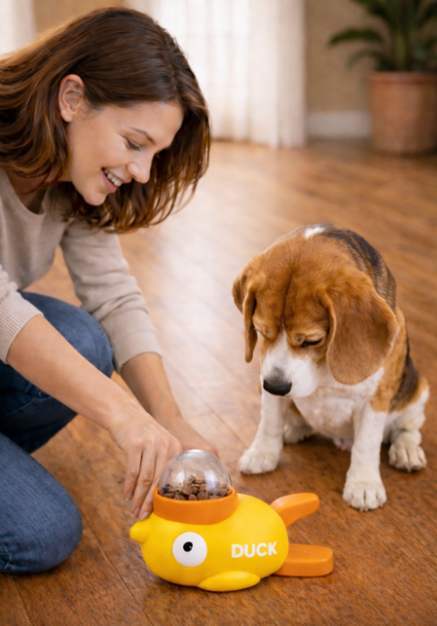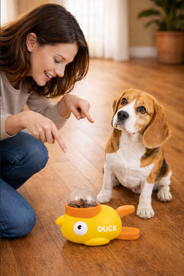 El 2 en 1 que convierte la hora de comer en un juego irresistible. 🦆✨ Mientras tu mascota lo empuja y lo “caza”, las croquetas salen poco a poco, manteniéndola entretenida, enfocada y feliz por más tiempo.